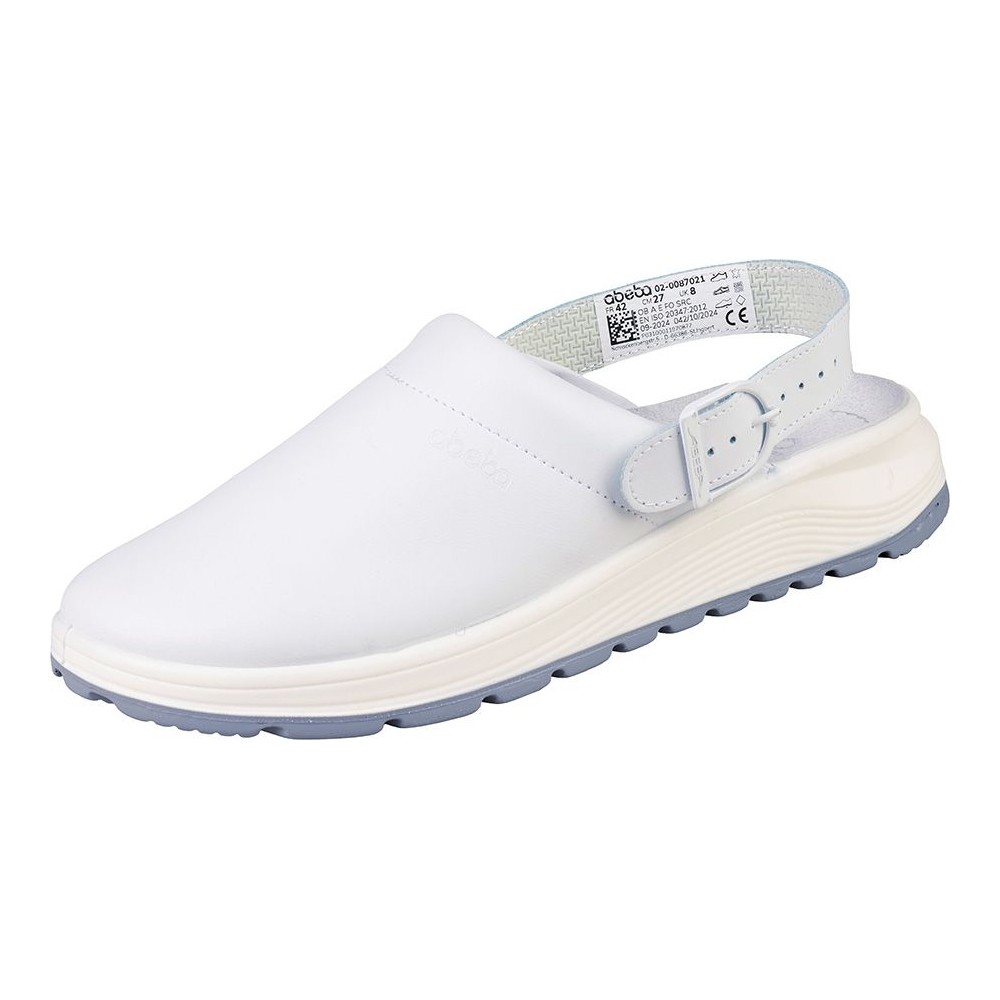 Pantolette ABEBA en cuir fleur, empeigne non-perforée, bord du cou-de-pied rembourré, support plantaire orthopédique en cuir, talonnière réglable pouvant être pivotée sur le cou-de-pied, semelle d’usure antidérapante.